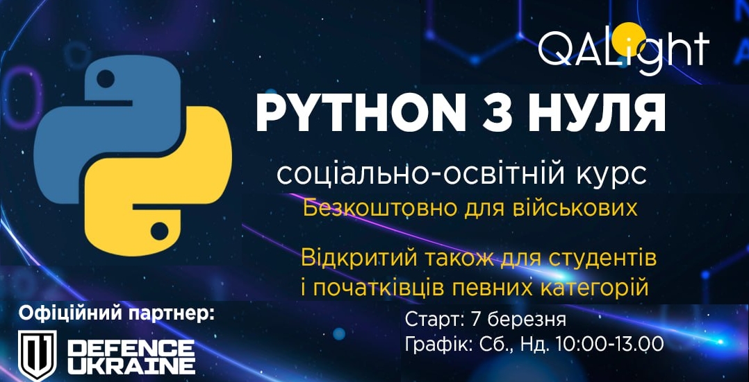 7 марта 2026 года QALight в рамках социально значимого образовательного проекта запустил курс «Python с нуля» для тех, кто сегодня защищает Украину, а также студентов отдельных категорий.